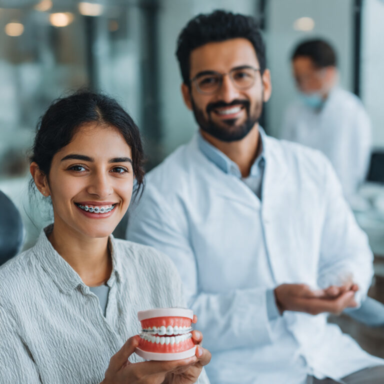 Traditional braces and clear aligners to straighten your teeth comfortably.